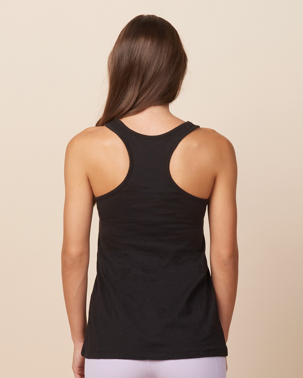 - Racerback design for mobility and a sporty edge